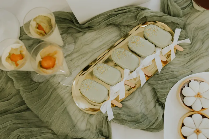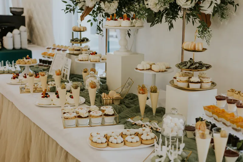 Oprócz tortów przygotowuję także eleganckie słodkie stoły — makaroniki, tartaletki, babeczki, cake popsy, bezy, mini desery i wiele więcej.