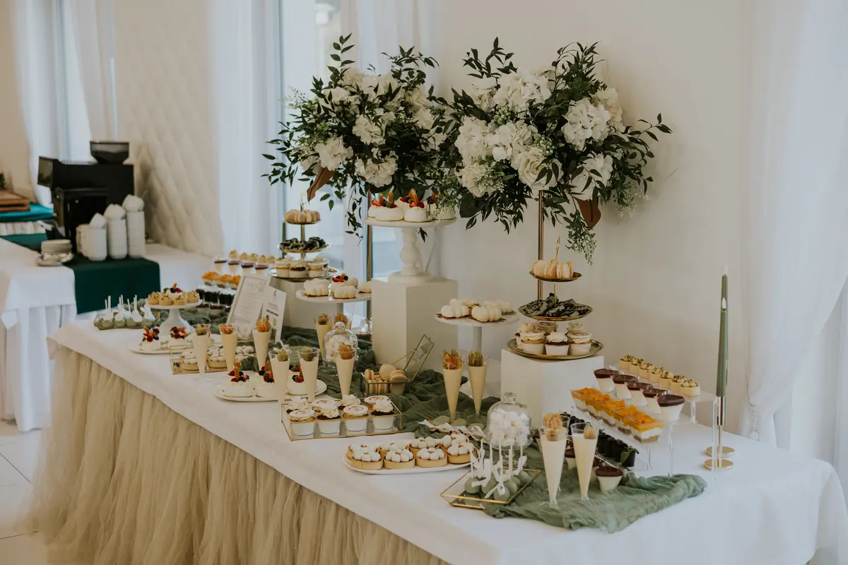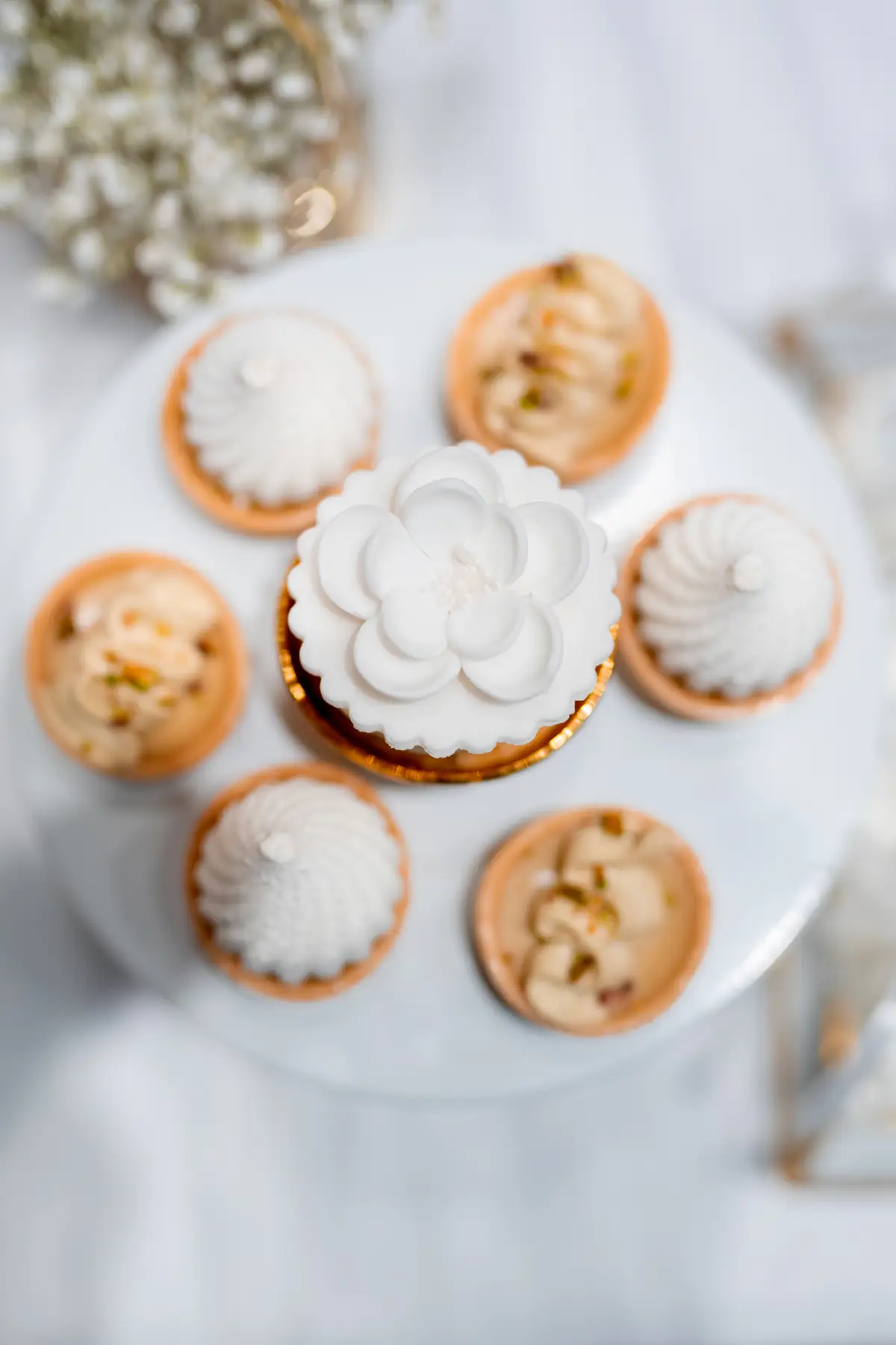 Oprócz tortów przygotowuję także eleganckie słodkie stoły — makaroniki, tartaletki, babeczki, cake popsy, bezy, mini desery i wiele więcej.